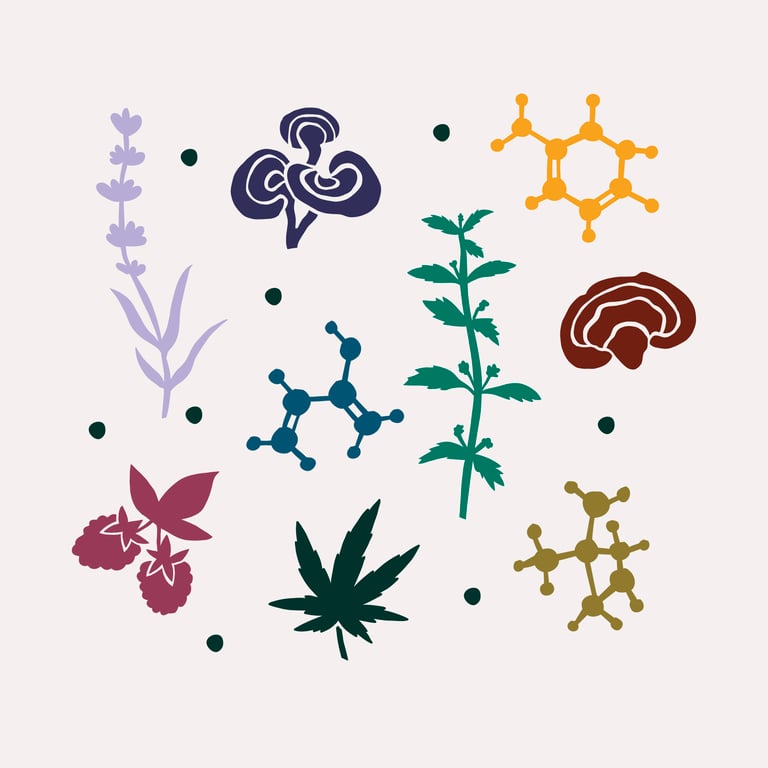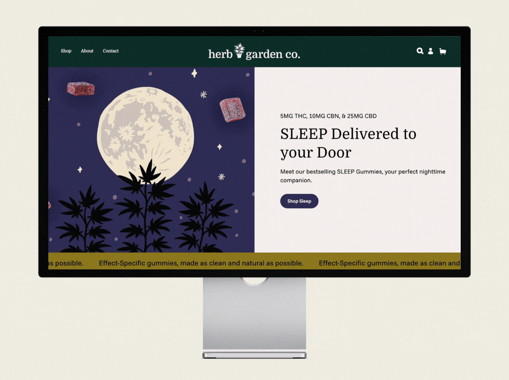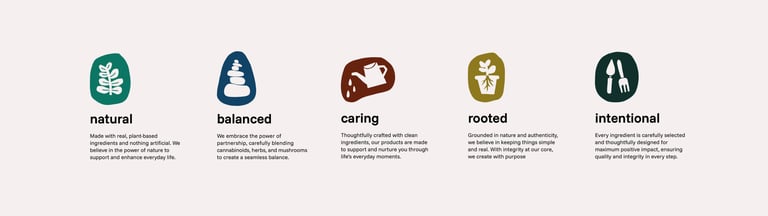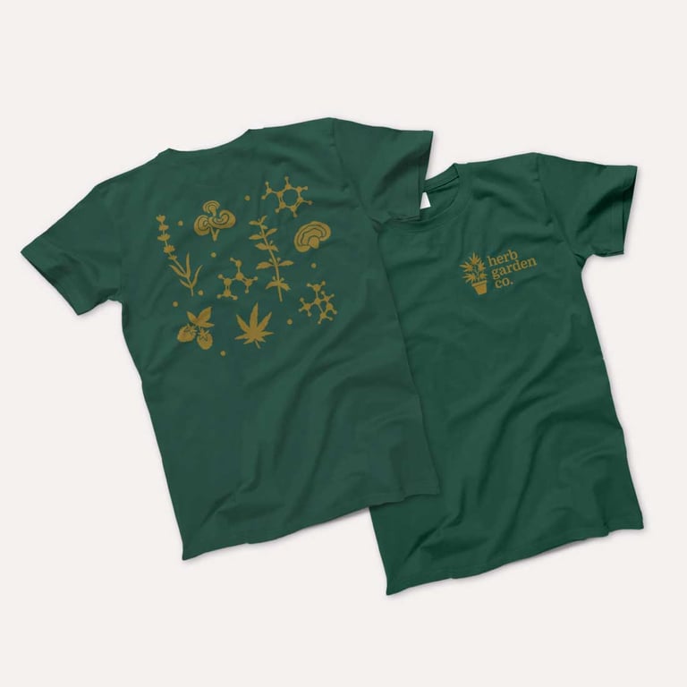 The Solution: A flexible, intentional packaging system was created with a calm, elevated look rooted in nature. We moved beyond the expected cannabis greens, introducing earthy, ingredient-inspired tones to differentiate flavors and formulations. Clear information hierarchy, custom iconography, and a repeatable layout created a cohesive system that extended beyond packaging into a full brand rollout, including a website and branded merchandise like shirts.