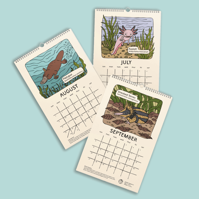 The Story: What started as a personal illustration challenge turned into a passion project to celebrate nature’s strangest animals. Each hand-drawn illustration highlights unusual features or fascinating facts, blending education with play. The collection is designed to live beyond the page, from calendars and art prints to stickers and coloring books.